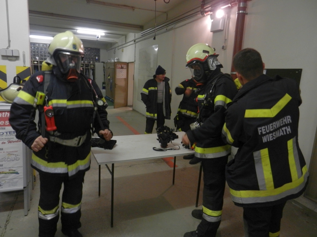 Am Dienstag, dem 20.10.2015, fand in Wiesmath eine Atemschutzübung statt an der 22 Kameraden teilnahmen. Die Übung wurde auf drei Stationen aufgeteilt. Die erste Station befasste sich mit dem richtigen Ausrüsten. Dabei wurde nicht nur auf das richtige Anlegen des Atemschutzgeräts geachtet sondern auch auf die Verwendung des Notfall-Zweitanschlusses. Im Anschluss mussten die Trupps mit unserer Wärmebildkamera in ein verrauchtes Gebäude. Dabei sollte ein Brandherd nur mit Hilfe der Kamera gefunden werden. Als letzte Station wurde die Bekämpfung eines Flashover gefährdeten Raumes behandelt.