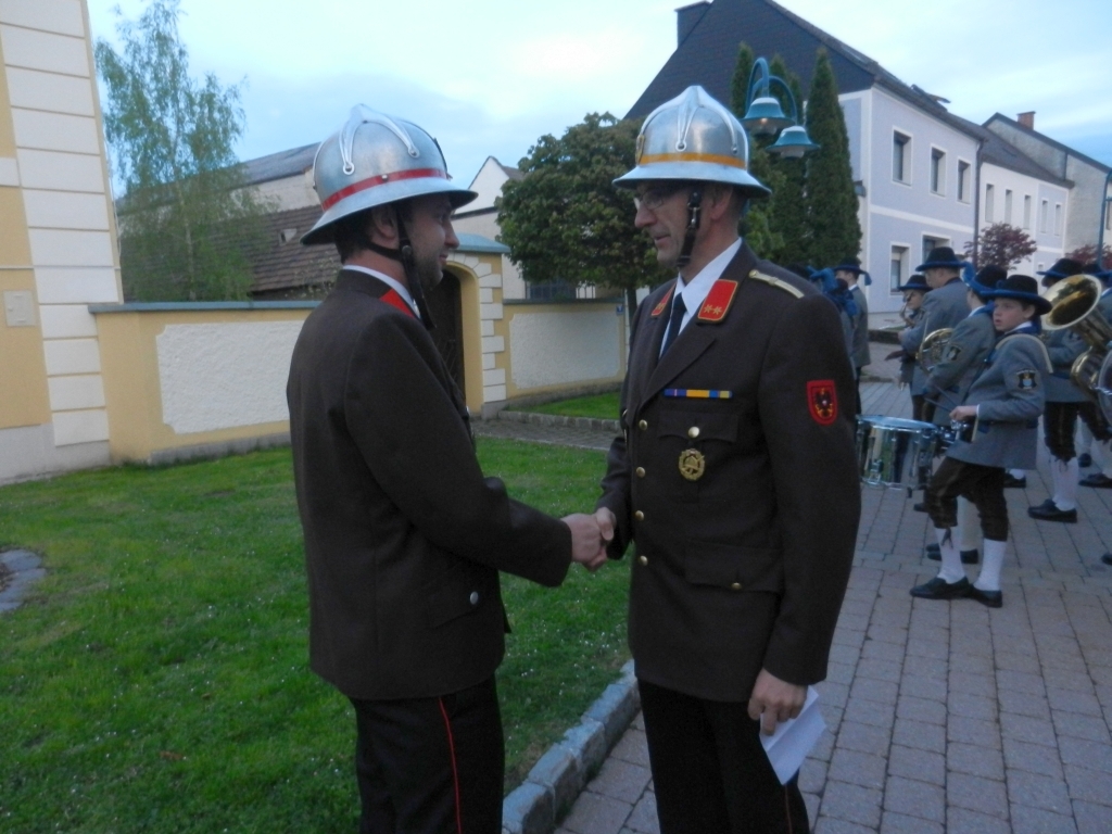 Im Anschluss an die Messfeier wurden vor der Florianisäule die Beförderungen vorgenommen. Christoph Handler wurde zum OFM und Markus Gubala zum HFM befördert. Außerdem wurde Bernd Rathmanner zum Sachbearbeiter für Öffentlichkeitsarbeit ernannt. Für die feierliche musikalische Umrahmung sorgte der Blasmusikverein Bucklige Welt Nord.