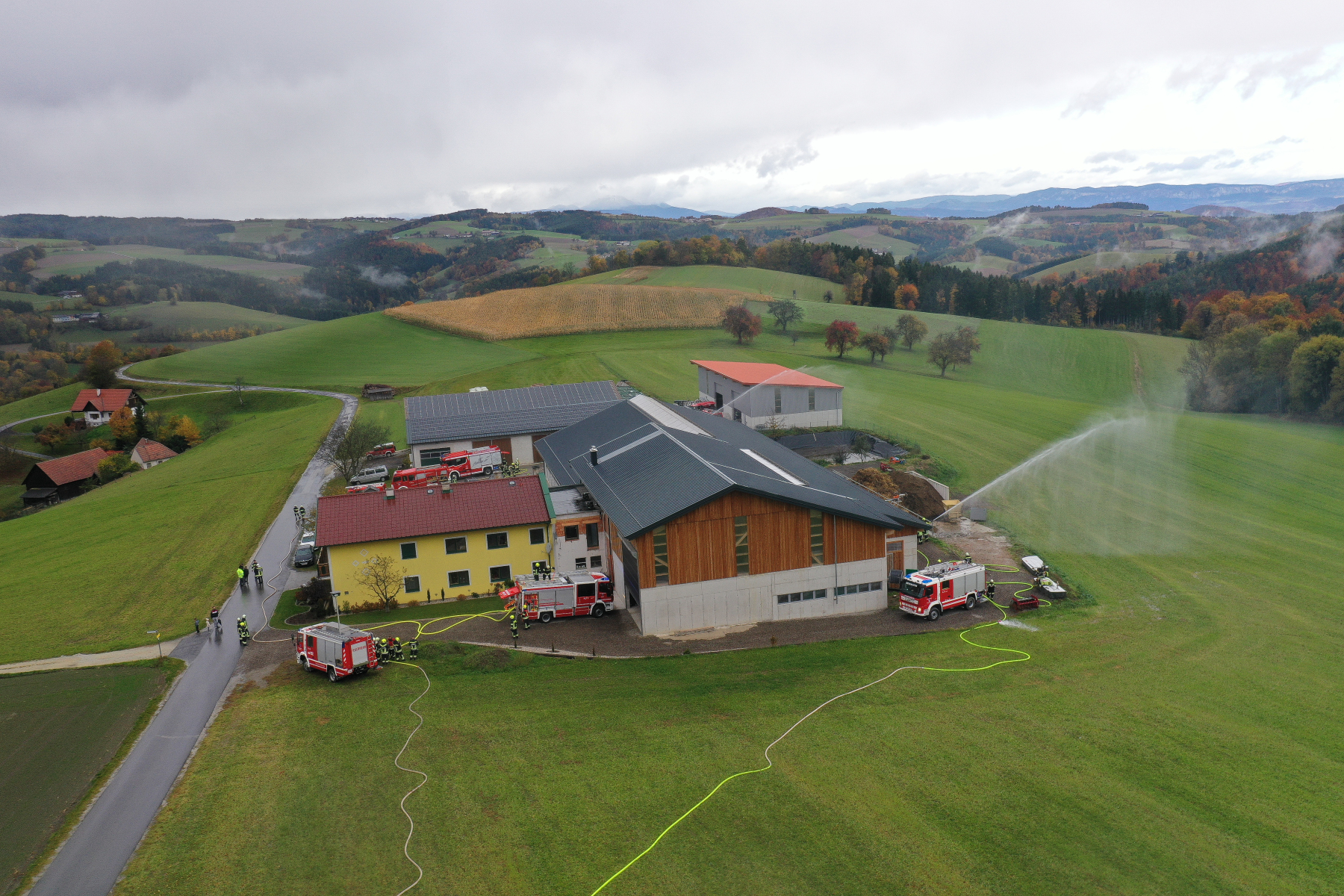 Nach dem Auffinden stellte sich heraus, dass beide Personen unter umgestürzten Heuballen eingeklemmt waren. Da es sich um einen Heudachboden ohne Stiegenhaus handelte, mussten die Personen mittels Leitern gerettet werden. Parallel dazu wurde der Brand unter Atemschutz bekämpft.