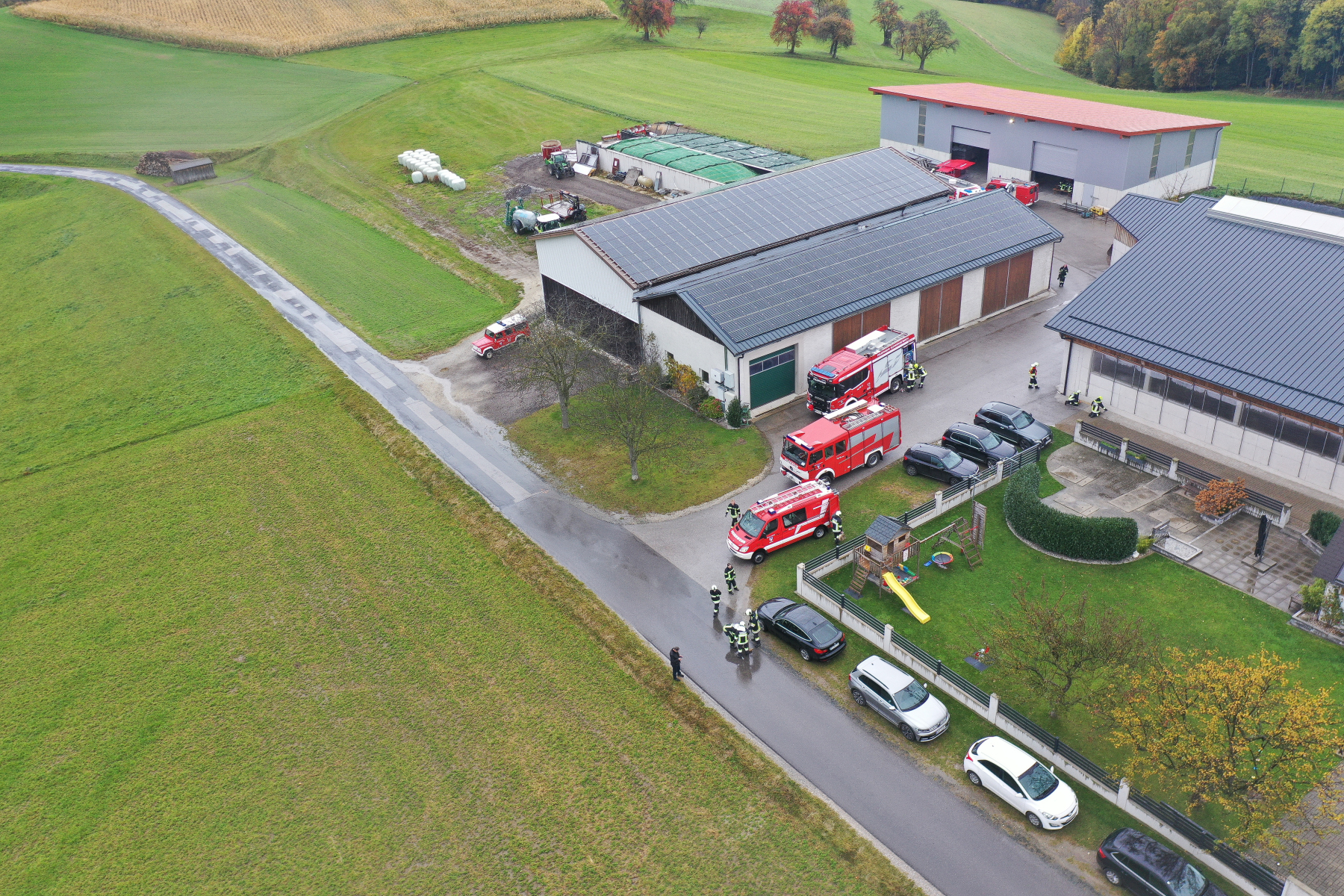 Nach dem Auffinden stellte sich heraus, dass beide Personen unter umgestürzten Heuballen eingeklemmt waren. Da es sich um einen Heudachboden ohne Stiegenhaus handelte, mussten die Personen mittels Leitern gerettet werden. Parallel dazu wurde der Brand unter Atemschutz bekämpft.