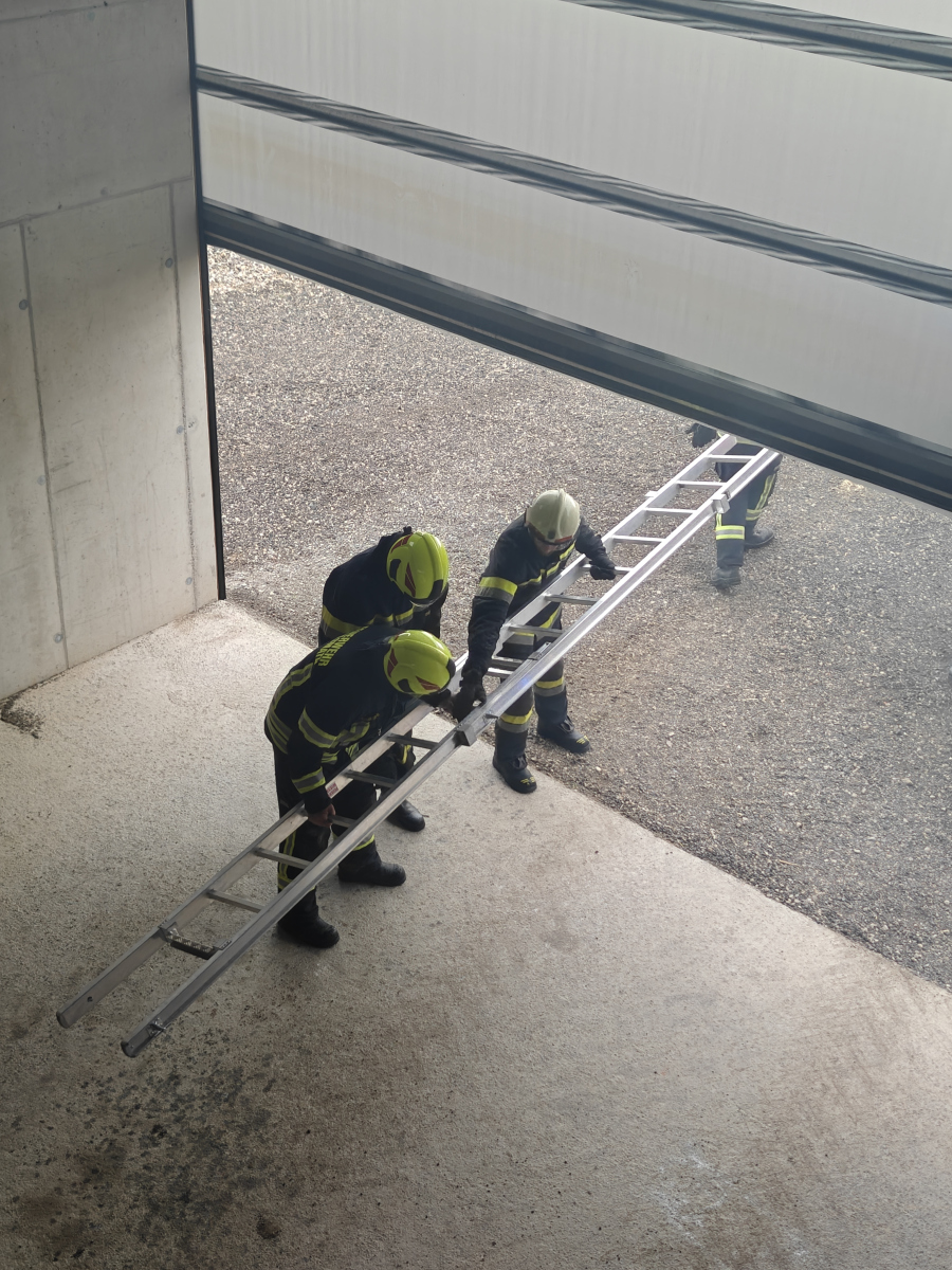 Nach dem Auffinden stellte sich heraus, dass beide Personen unter umgestürzten Heuballen eingeklemmt waren. Da es sich um einen Heudachboden ohne Stiegenhaus handelte, mussten die Personen mittels Leitern gerettet werden. Parallel dazu wurde der Brand unter Atemschutz bekämpft.