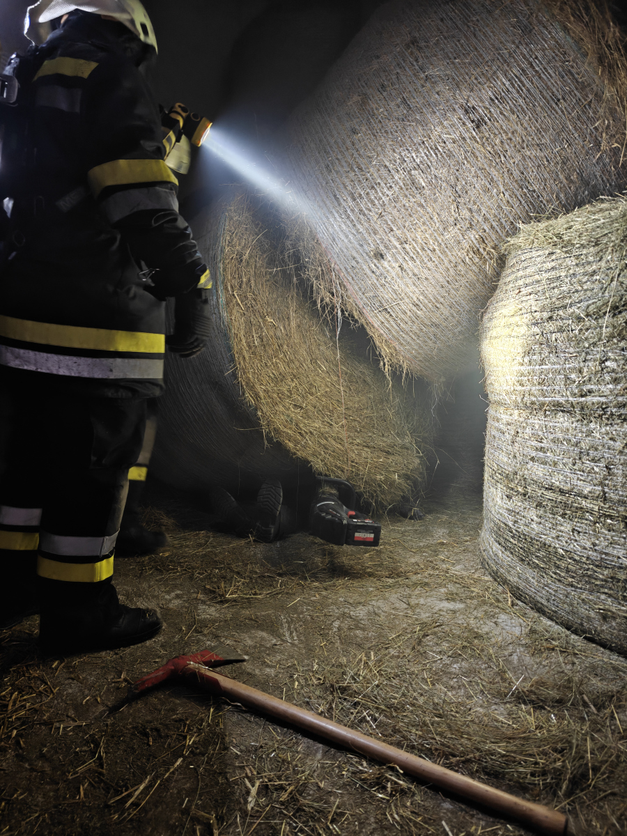 Nach dem Auffinden stellte sich heraus, dass beide Personen unter umgestürzten Heuballen eingeklemmt waren. Da es sich um einen Heudachboden ohne Stiegenhaus handelte, mussten die Personen mittels Leitern gerettet werden. Parallel dazu wurde der Brand unter Atemschutz bekämpft.