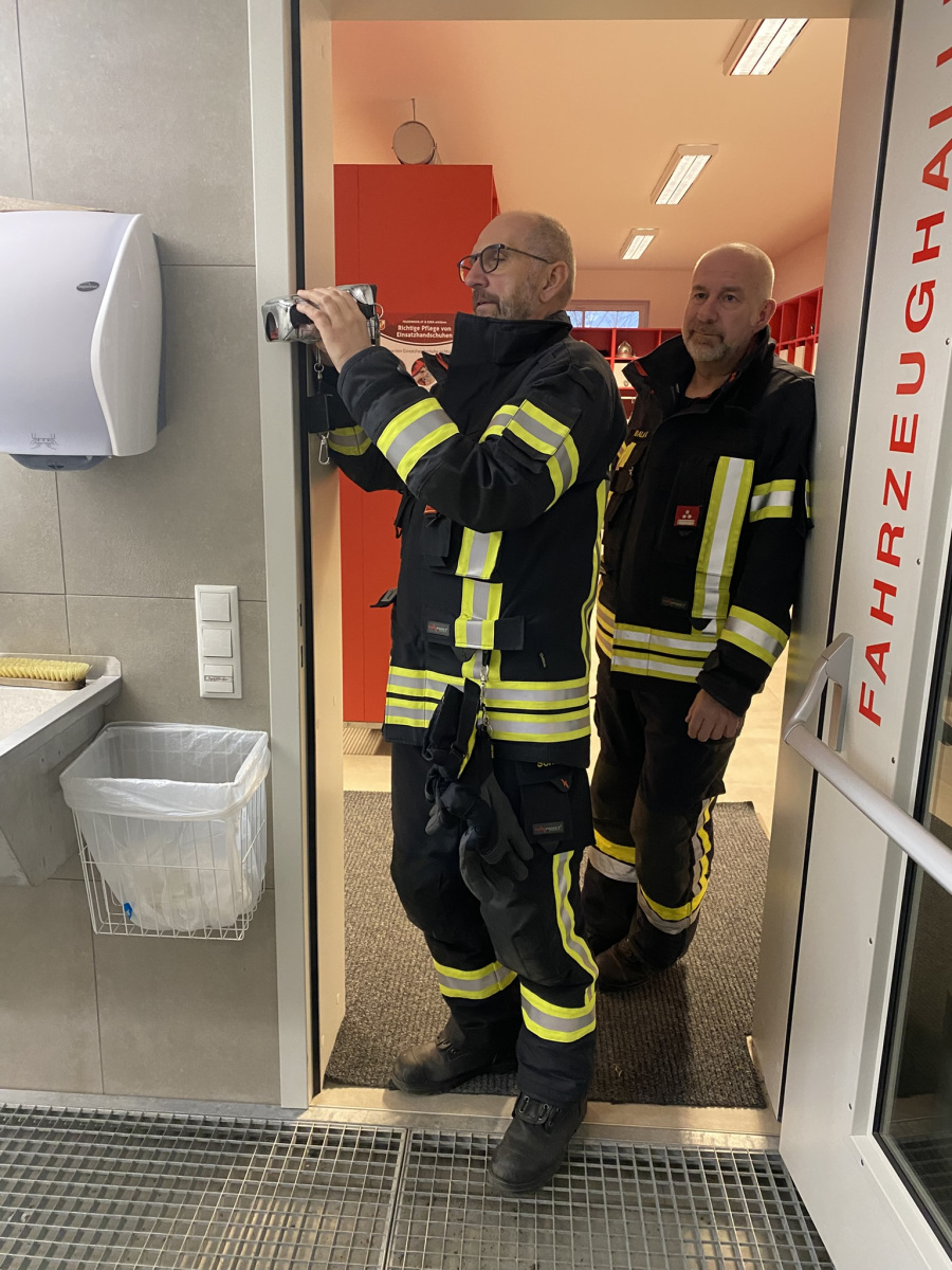 Temperaturkontrolle mit der Wärmebildkamera: Der Einsatz der Wärmebildkamera wurde intensiv geübt, um kritische Bereiche frühzeitig erkennen zu können.