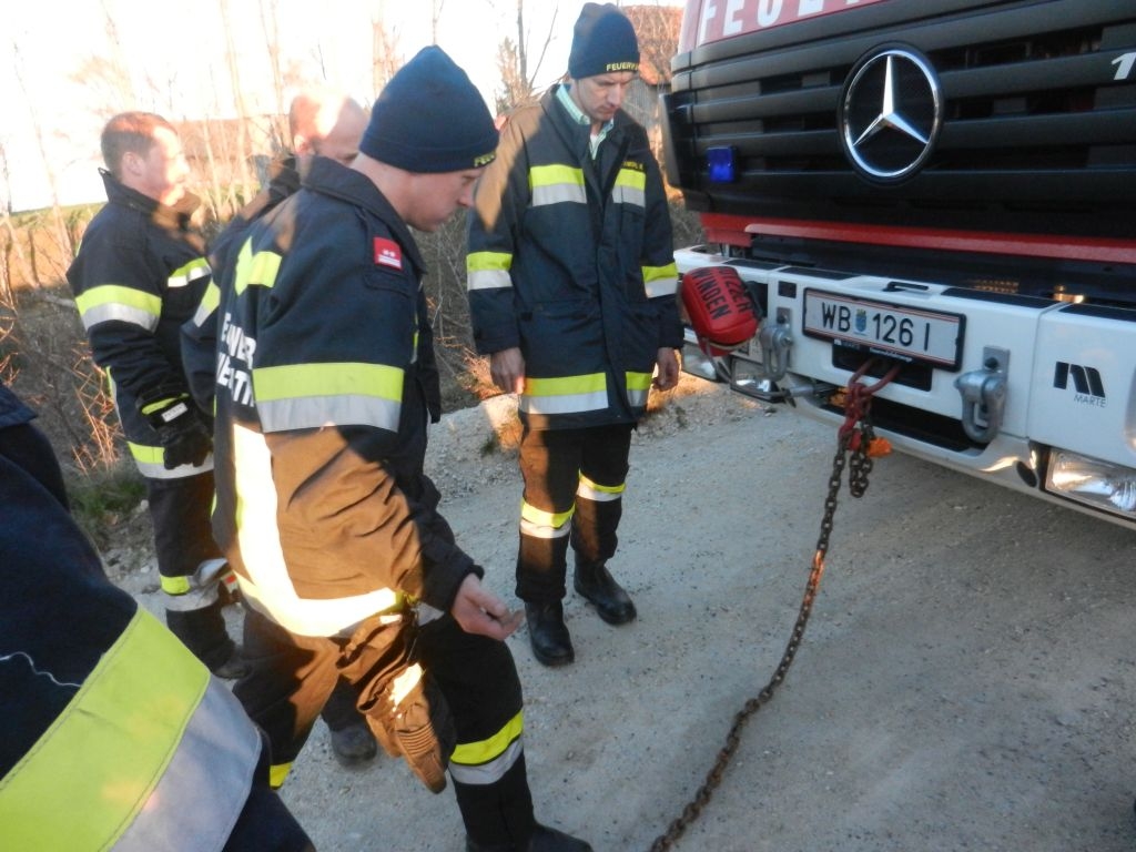 Am 13.04.2018 fand unsere zweite Winterschulung statt. Die anwesenden Kameraden begaben sich mit TLF und RLF zum neuen Feuerwehrhaus wo der Umgang mit der Freilandverankerung, dem Greifzug und der Seilwinde in einer fein ausgearbeiteten Übung gezeigt wurde. Wir nutzen alle Geräte um unseren KLF zu sichern bzw. ihn zu bergen.