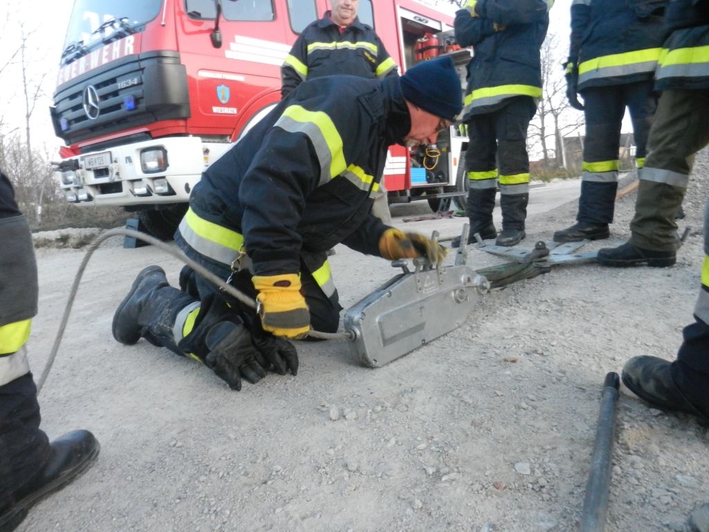 Am 13.04.2018 fand unsere zweite Winterschulung statt. Die anwesenden Kameraden begaben sich mit TLF und RLF zum neuen Feuerwehrhaus wo der Umgang mit der Freilandverankerung, dem Greifzug und der Seilwinde in einer fein ausgearbeiteten Übung gezeigt wurde. Wir nutzen alle Geräte um unseren KLF zu sichern bzw. ihn zu bergen.